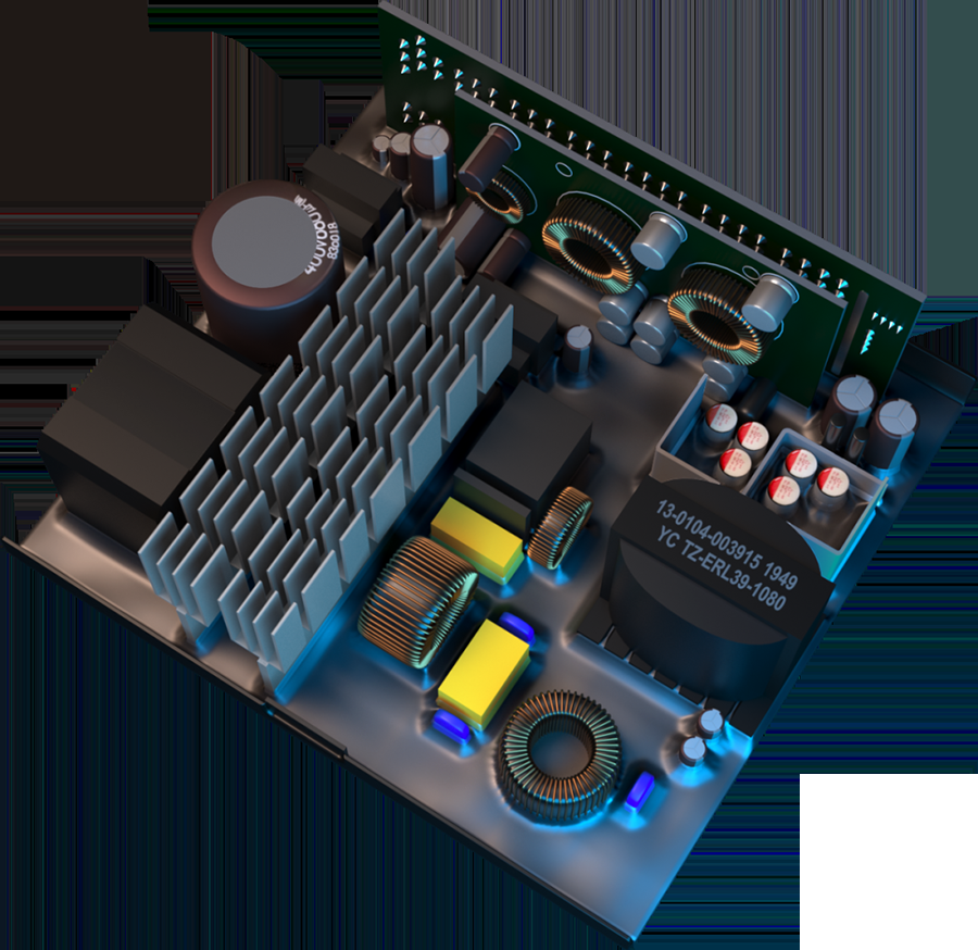 全桥谐振&DC-DC架构,转化效率超过全电压金牌要求,最高可达92%,真正足瓦足金。高效率低发热量是电源长寿命的关键所在。其他元器件也都是相关领域顶级品牌。