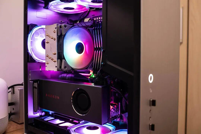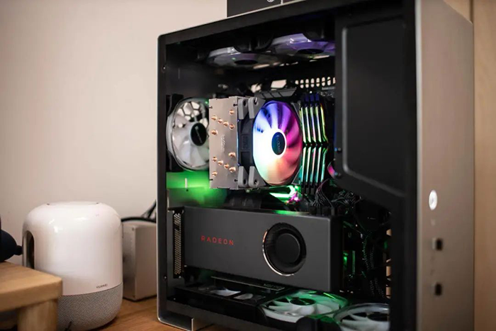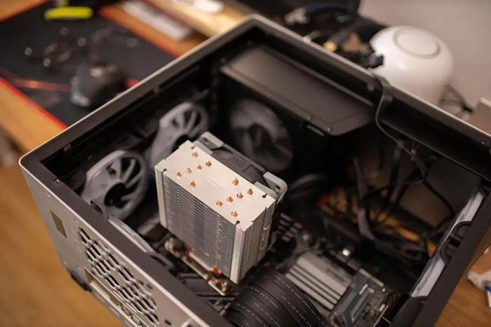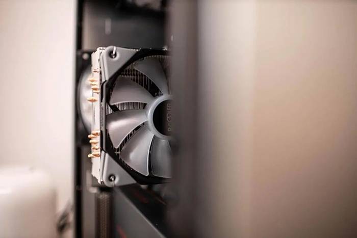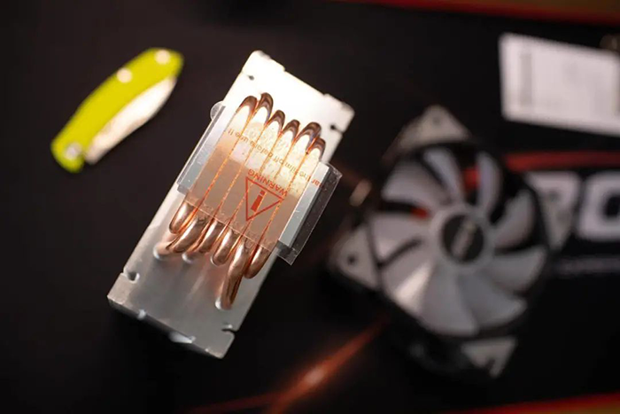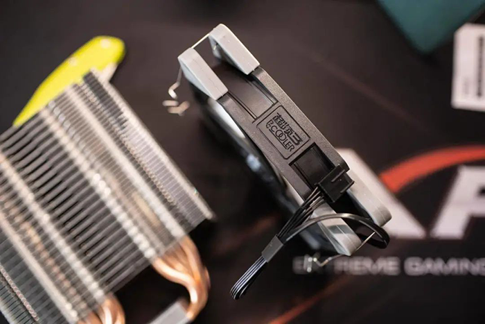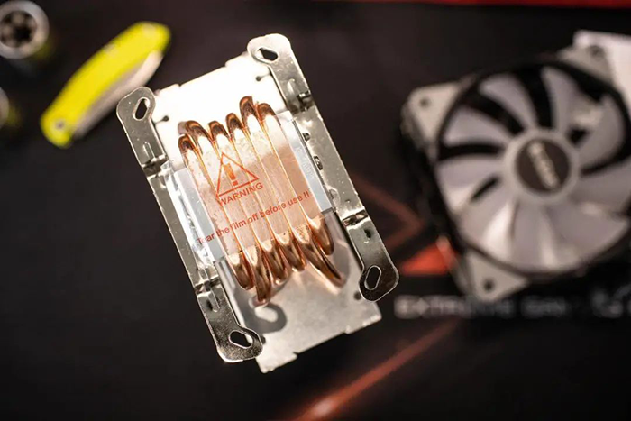 散热器是银灰为主基调,铜管裸露,质感不错,整体配色也比较协调。