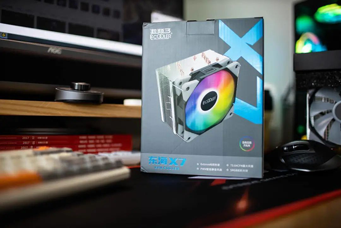 风冷选择有很多,你可以从京东上轻松搜索到100-1000各个价位的产品,除了外形设计的不同,热管数量,做工和工艺,结构设计都是刚性指标,我这次入手的是一款性价比十足的产品,这枚X7散热器隶属于国内散热大厂超频三东海系列,使用了6*6mm热管加单塔结构,标配一枚12cm sRGB高性能风扇,风量最大输出提升至73.64CFM,并延续了超频三一贯口碑良好的全平台金属扣具,官方资料显示可以压制230W以下的CPU,性能和颜值都保持良好的均衡,当然最让我欣喜的是这款散热器的定价只有149元,在这个配置下真的超值。