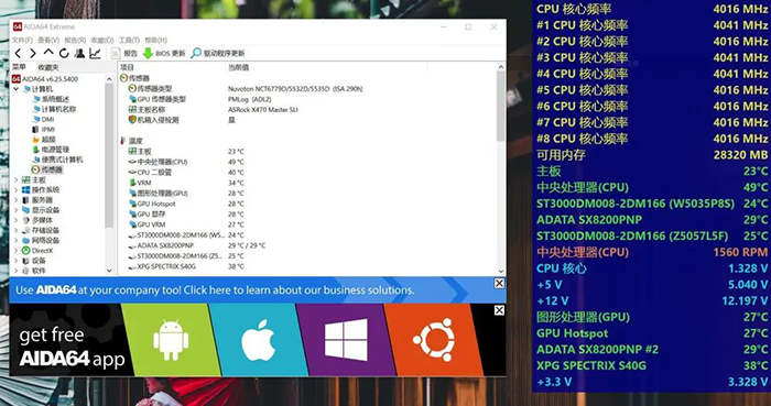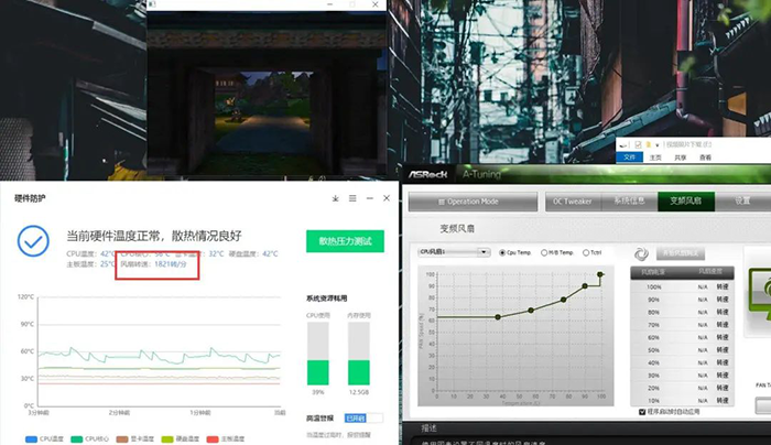此时风扇转速已经自动调整为最高转速,达到了1800RPM左右,通过主板的控制软件,我们可以精细的调节风速变化。