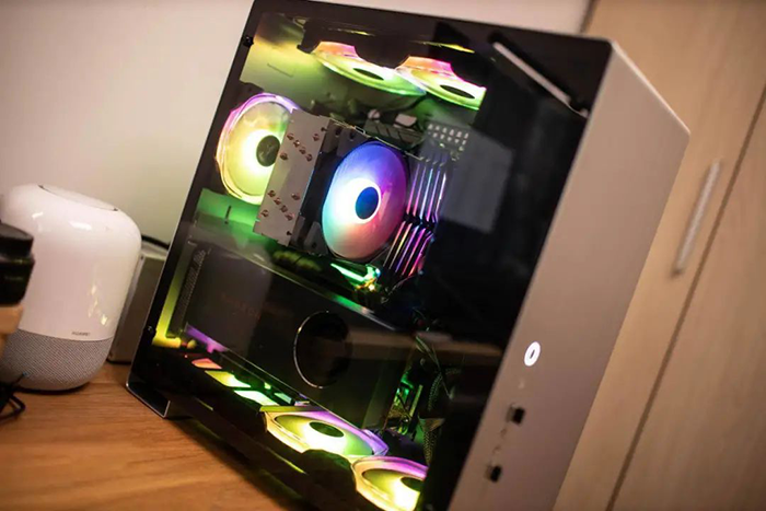 好了通电一次点亮,靠近观察可以发现风量真的很大,sRGB的灯效表现也非常漂亮。