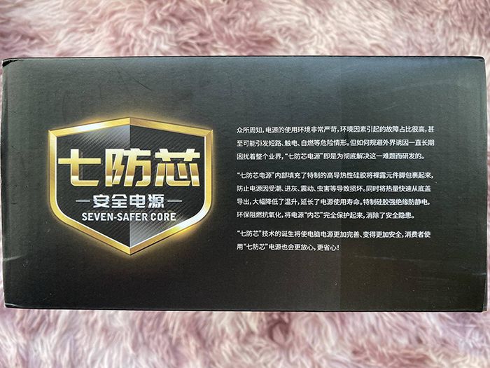 包装侧面有七防芯系列的产品理念,看来超频三对这个卖点颇为自得——话说回来,
