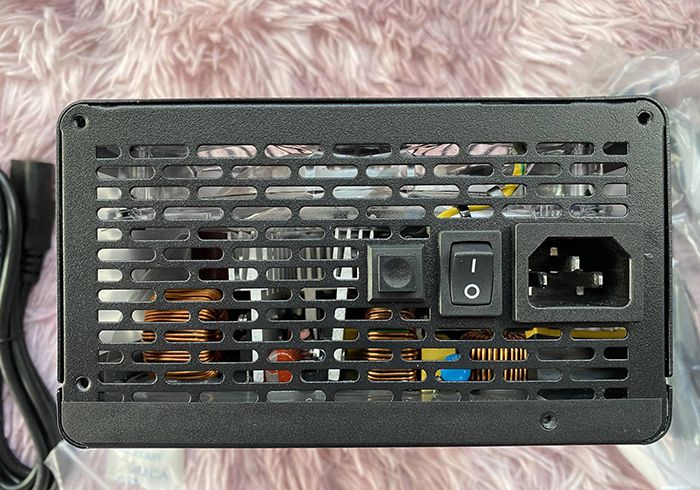 电源背面有独立开关,比以往产品还多了一个按键,是用来切换风扇策略用的,