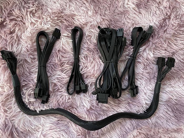 接口一览。虽然瓦数比最高的850W产品小了不少,但是接口上并没有对应消减。