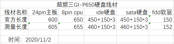 线材方面除了24pin主板供电以外,均采用扁平线。其中亲测长度如下: