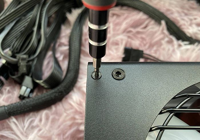 超频三这款电源上的螺丝不是常见的十字口而是内六方,一般在tb上9.9包邮的一盒螺丝刀中都有配备。