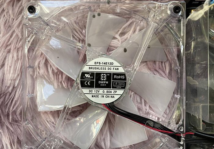 同样是来自东维丰的14CM 12V 0.8A风扇,采用动压轴承设计,导流塑料片也没有缺失。
