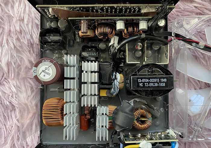 电源内部和之前看过的850W版本差别不大,同为主动式PFC+LLC+同步整流+DC-DC。