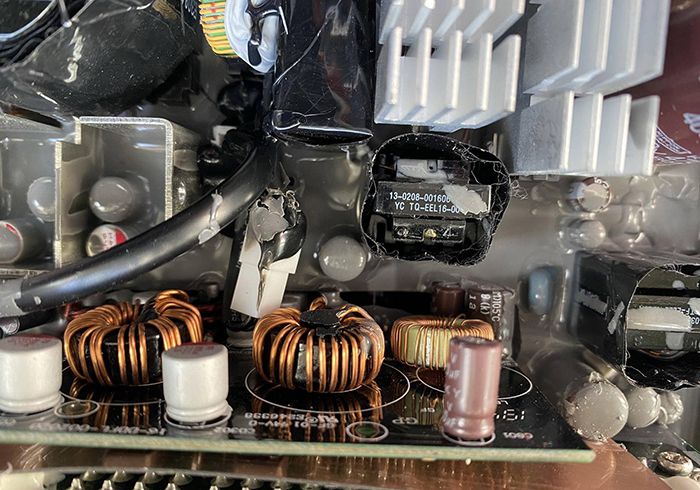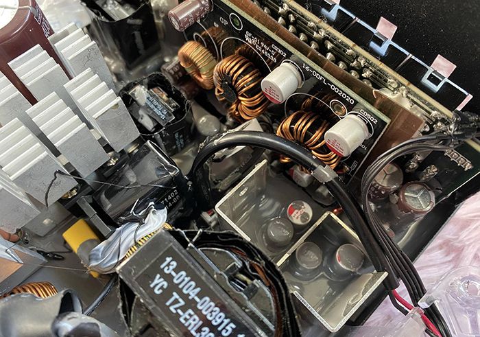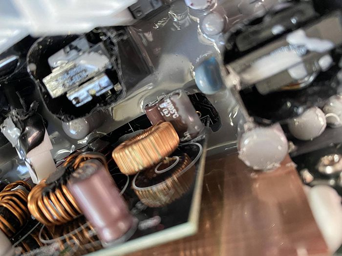 850W版本是6个,这个650W版本是4个;挨着主电容的升压电感变成了裸线圈。