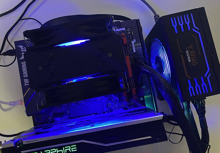 风扇上有ARGB的LED灯,侧面也做了镂空处理,用导光条挡住相应部位。
