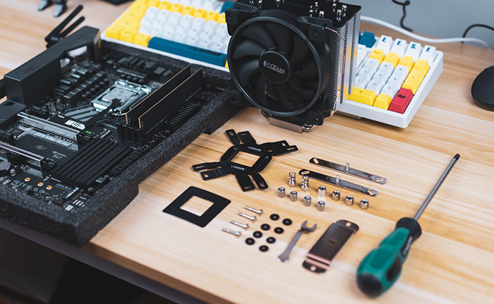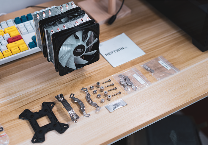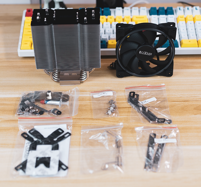 打开内部包装,双方给我的感觉也与我上面举的例子一样,分别对应了AK47以及M4。大霜塔对应了AK47,开箱就一个散热器主体,一个配件包,就连风扇都给你装好,到手就可以用。