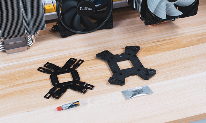 在配件方面,双方也有区别,如东海风云的底部支架是金属材质,大霜塔的是工程塑料材质。这个双方都有自己的优势,金属更牢固,塑料绝缘更安全。但是在赠送的导热硅脂上,注射式包装的东海风云明显比袋装的大霜塔更厚道。