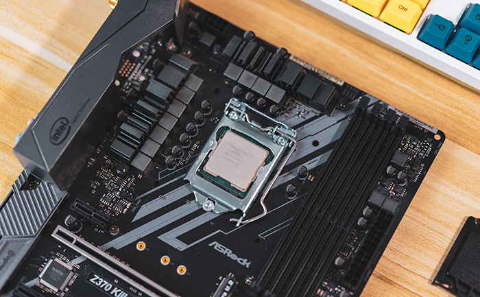 这次测试采用的主板是华擎Z370 Killer SLI/AC,CPU为i5 9600KF,主板采用10相数字供电+Nichicon 12K顶级黑金电容+45A高效电感,也让这个“小雕”在1.32v上了5.0GHz的频率。
