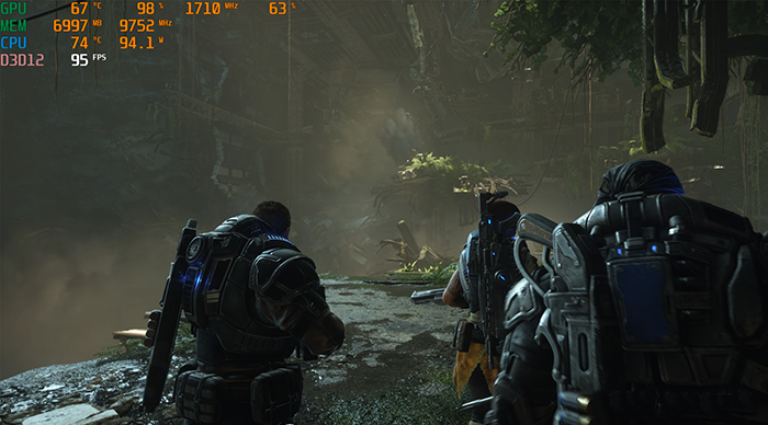 同样4K分辨率,最高特效的《战争机器5》中,CPU的温度在71~80℃之间。不过我觉得《战争机器5》的优化应该有点问题,就算在目录界面,CPU也是满载运行,CPU温度也居高不下。