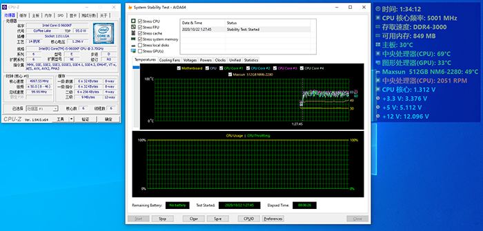 温度方面,通过AIDA64拷机,东海风云居然超越了大霜塔,CPU温度控制在69℃,看来2000转的风扇的确发力不少。