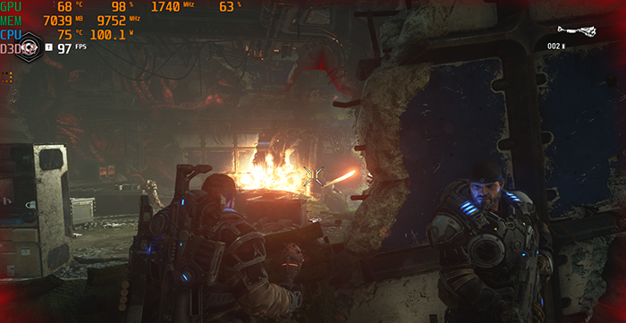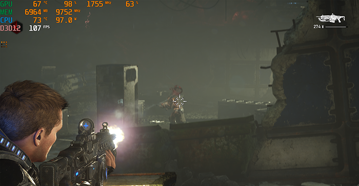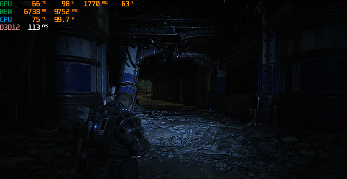 4K分辨率,最高特效的《战争机器5》中,CPU的温度在基本都在80℃以内,不过偶尔会飙升到83℃,估计还是和这个游戏的优化有关。
