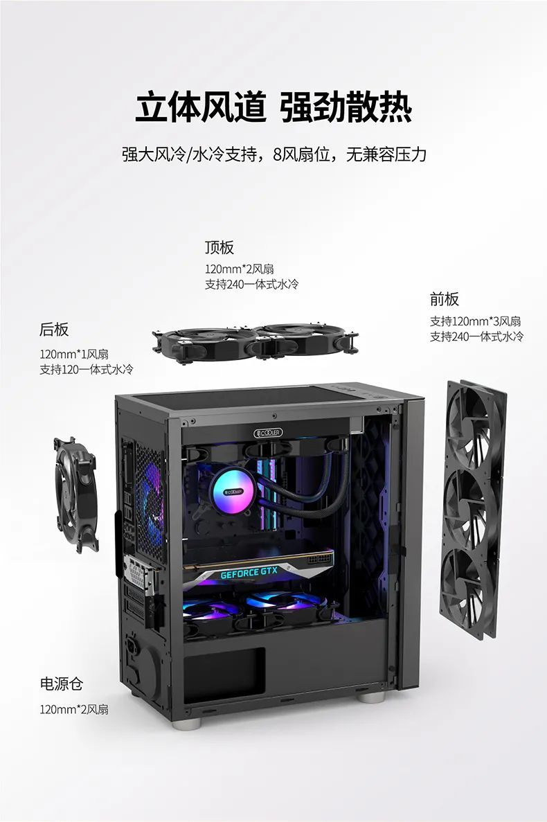 8风扇位设计,立体散热风道更胜一筹。