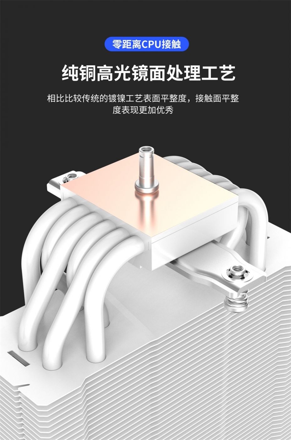 底座方面采用了纯铜回流焊底座,CNC高光镜面处理工艺,触感十分光滑平整,外表十分美观,如艺术品一般。