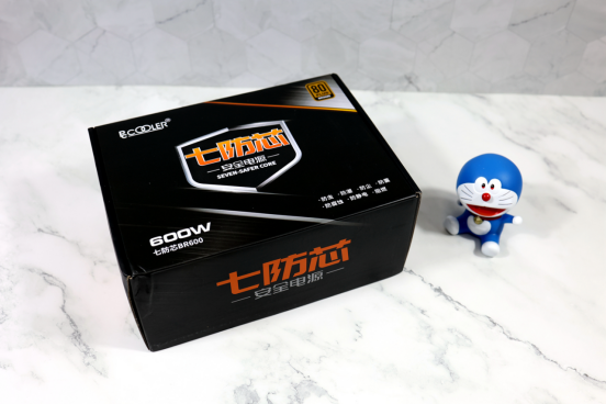 ▲七防芯GI-BR系列电源的外包装采用了全黑彩盒设计,盒子上印有电源的瓦数型号。