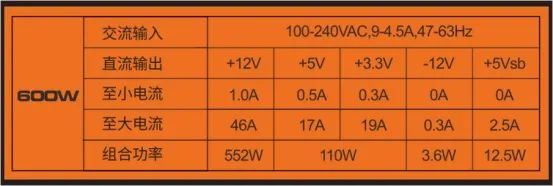 BR600的采用单路12V输出,最大功率552W,占总功率的92%,属于优秀水准。