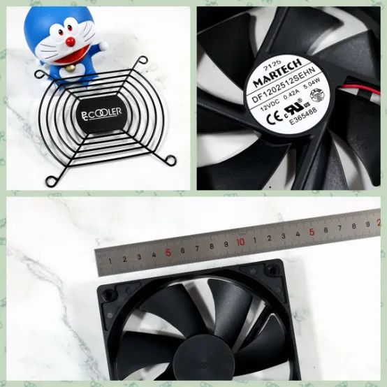 ▲先看风扇部分,这款电源配备了12cm的液压轴承静音风扇,可以智能监控温度改变转速,即使是满载运行噪音也非常的低。