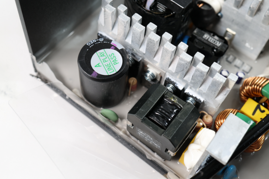 主电容来自台湾CapXon丰宾电子,参数是270μF,最高承压400V,耐受温度为105℃,台系用料扎实可靠,放在这样的中端电源上算是诚意十足了。